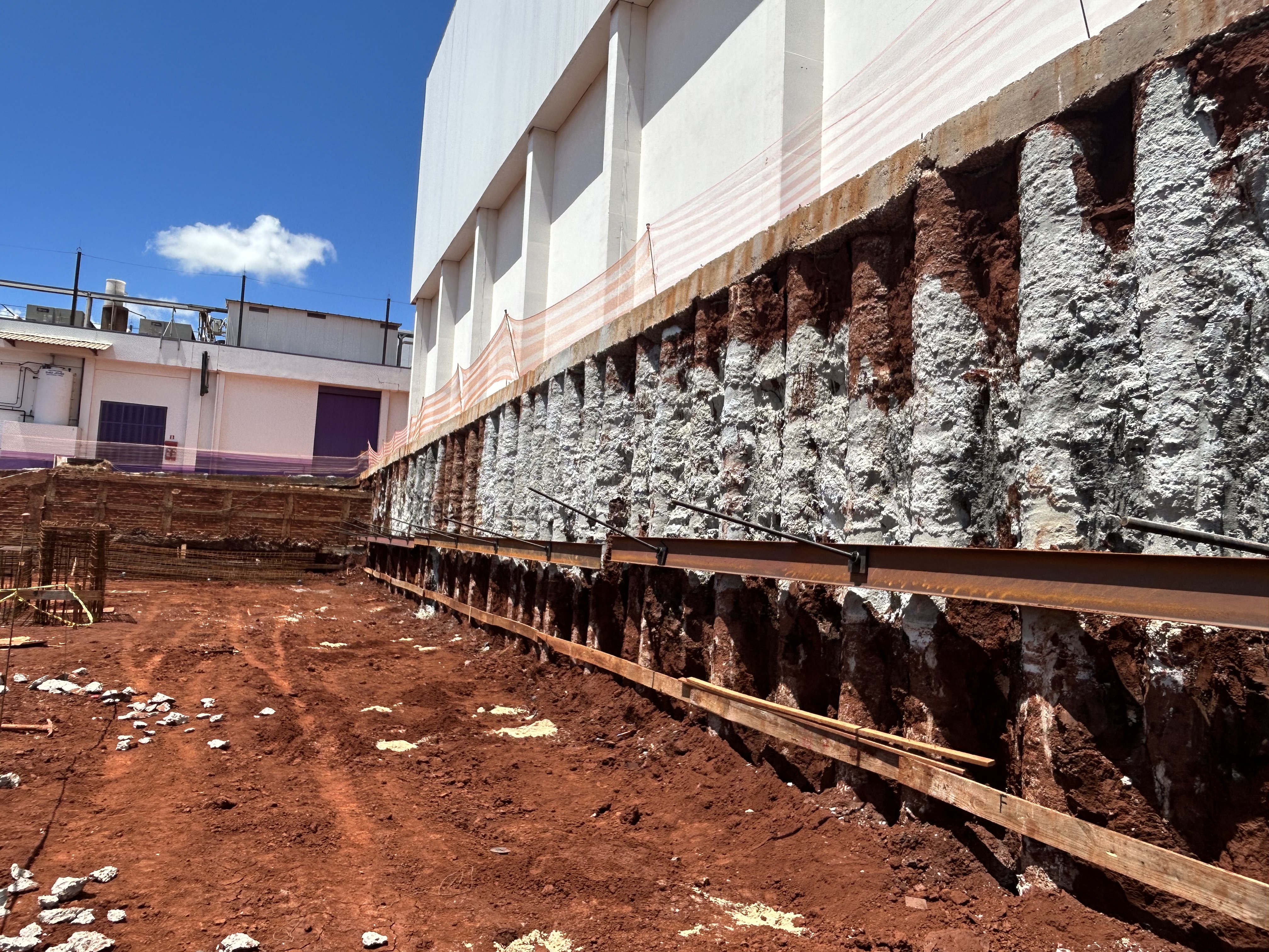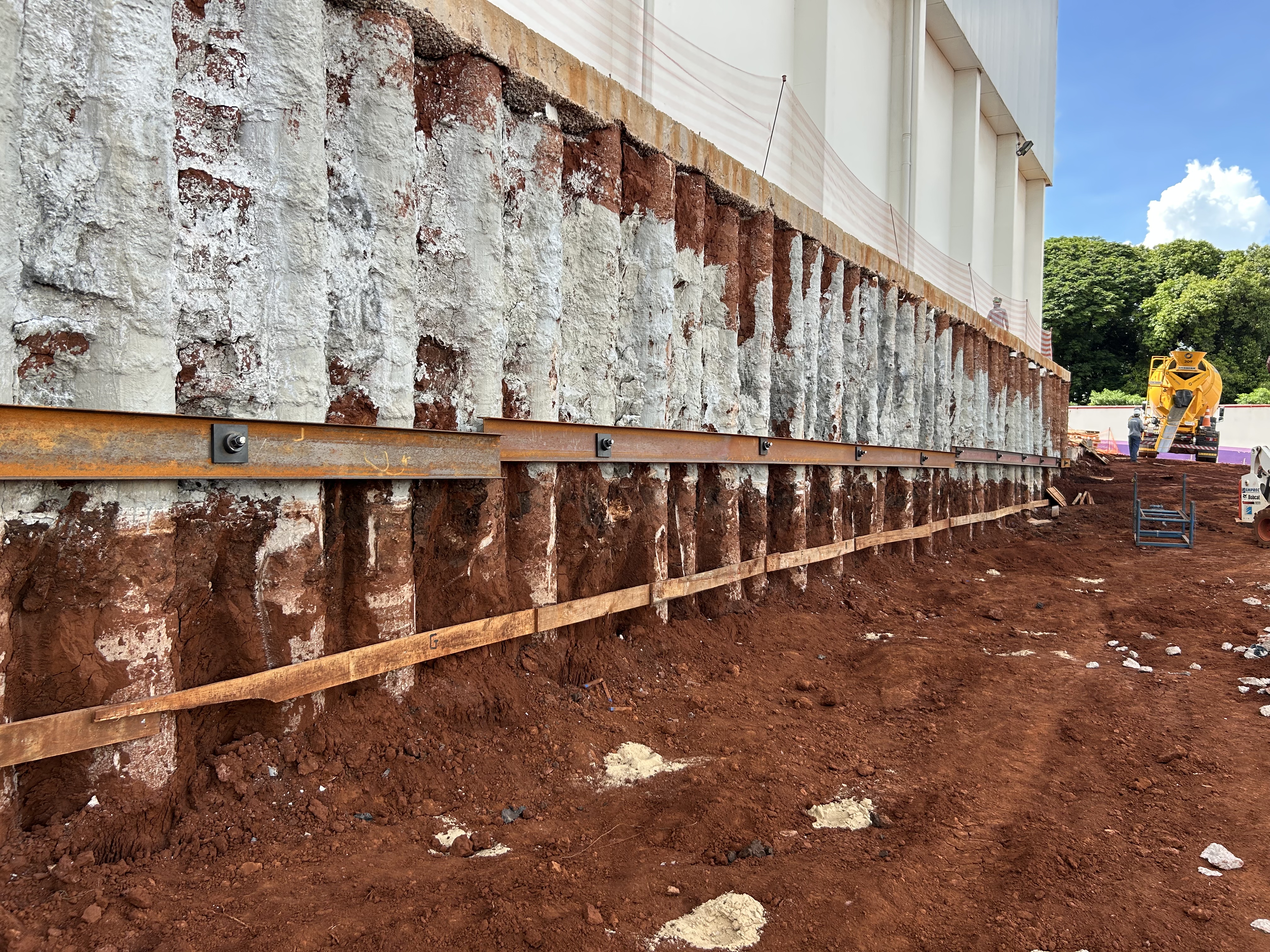 Projeto e execução de cortina em estacas escavadas atirantadas para 6 metros de subsolo.