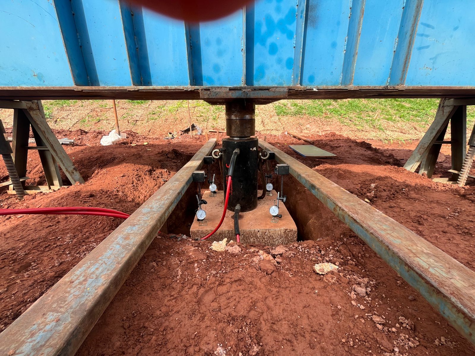 Projeto e execução de 3 provas de carga em estacas trado mecânico para obra do TJ em Iporã/PR.
