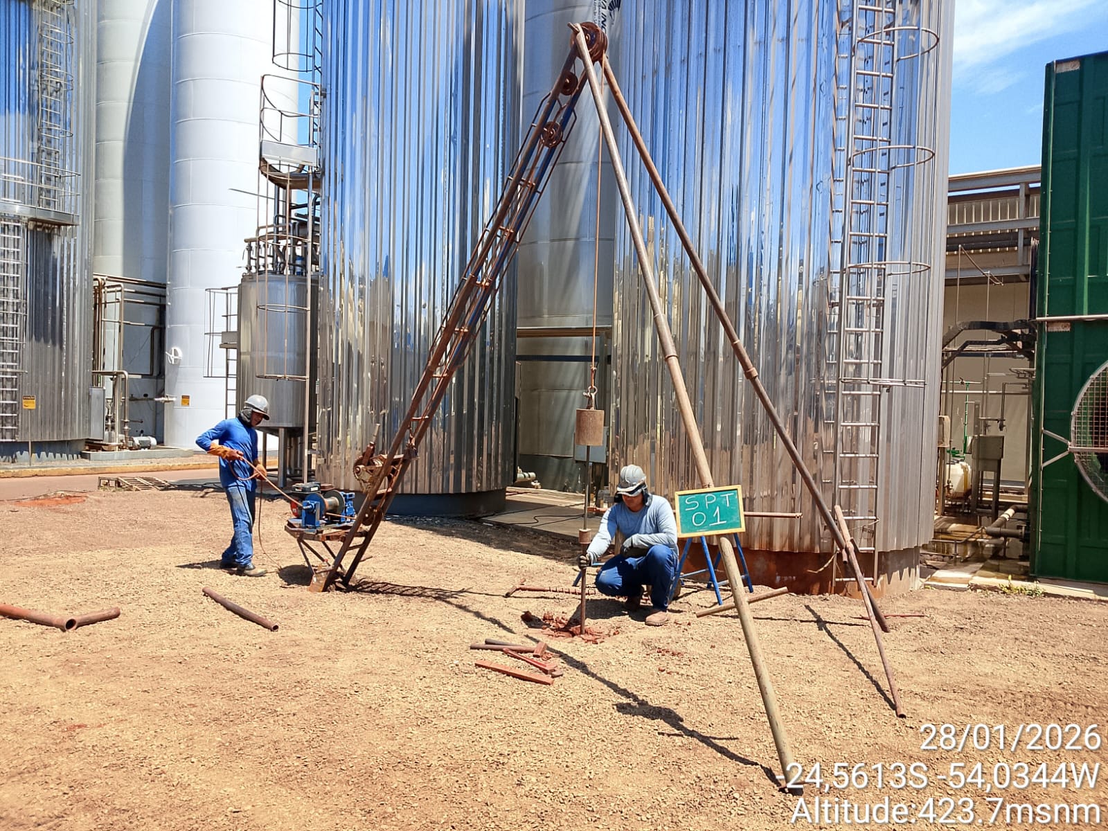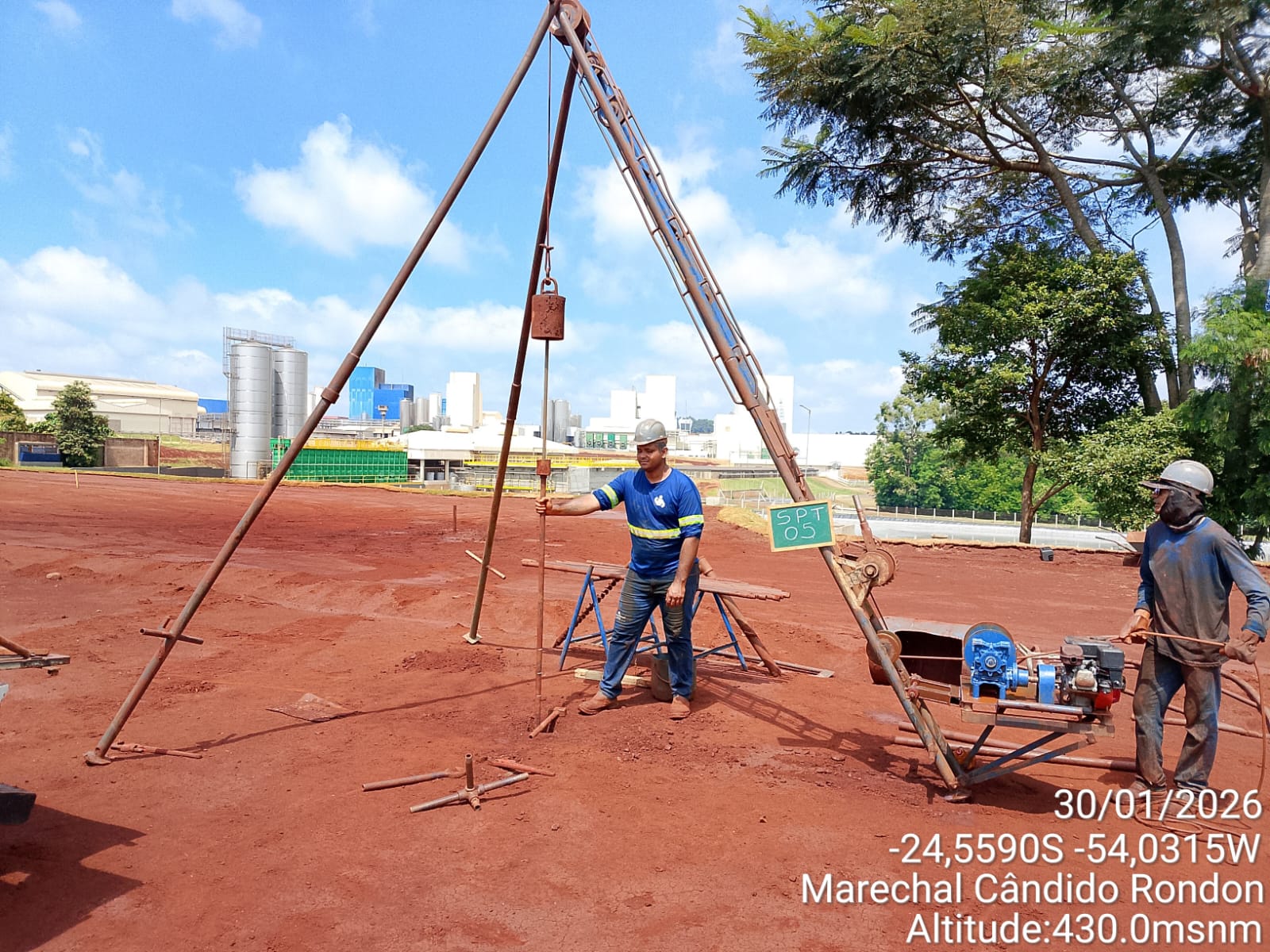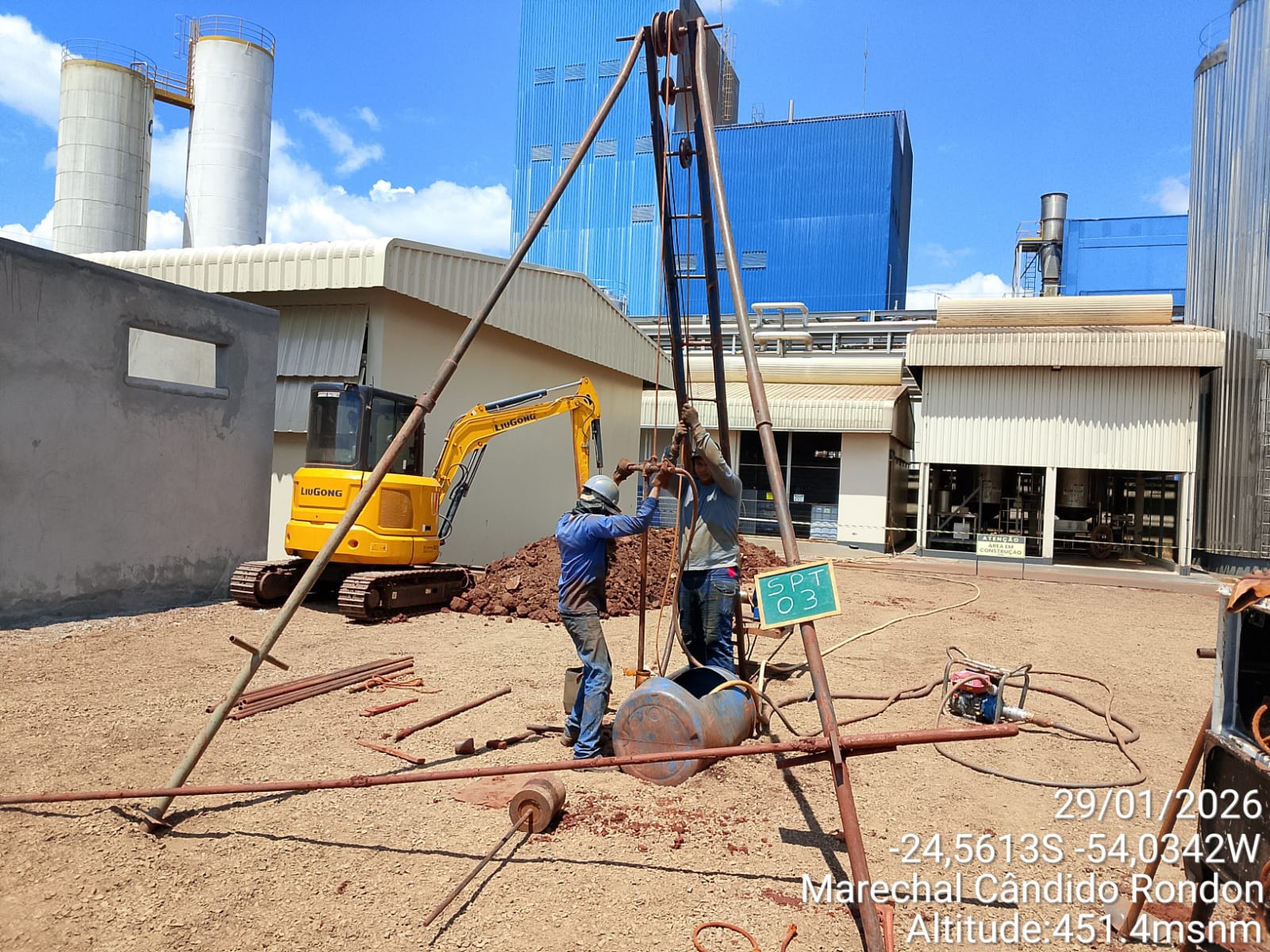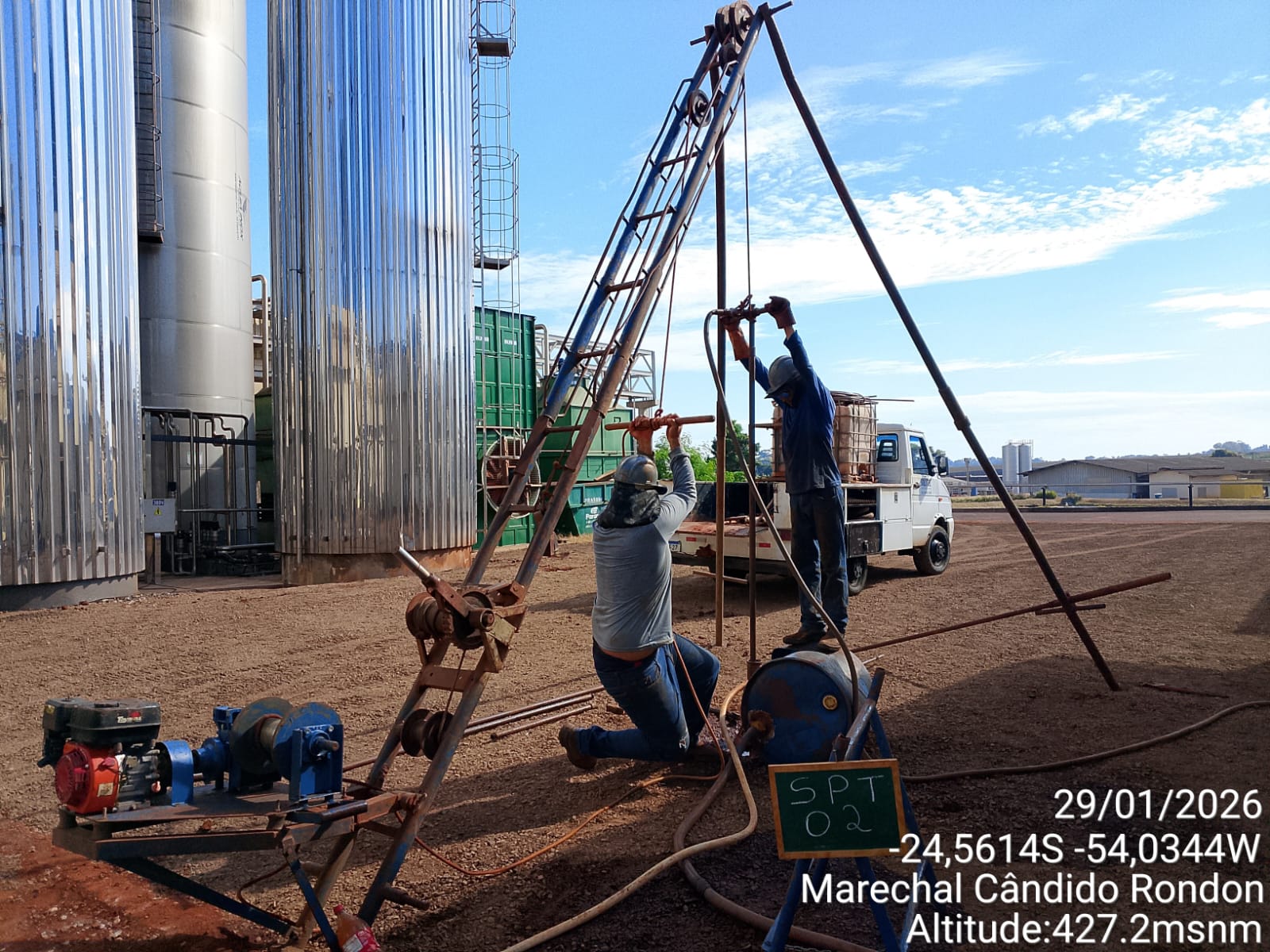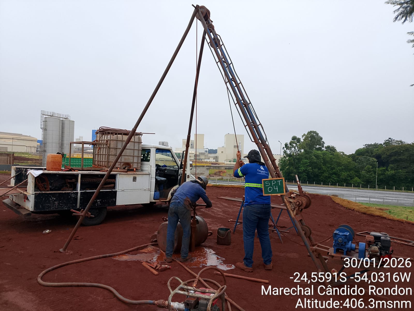 Execução de 13 furos de sondagem SPT para ampliação de unidade industrial da Sooro Renner em Marechal Cândido Rondon/PR